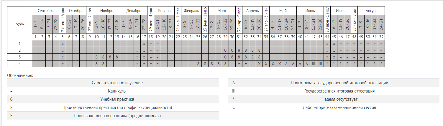 Календарный план (Скриншот из личного кабинета Электронной информационно-образовательной среды)