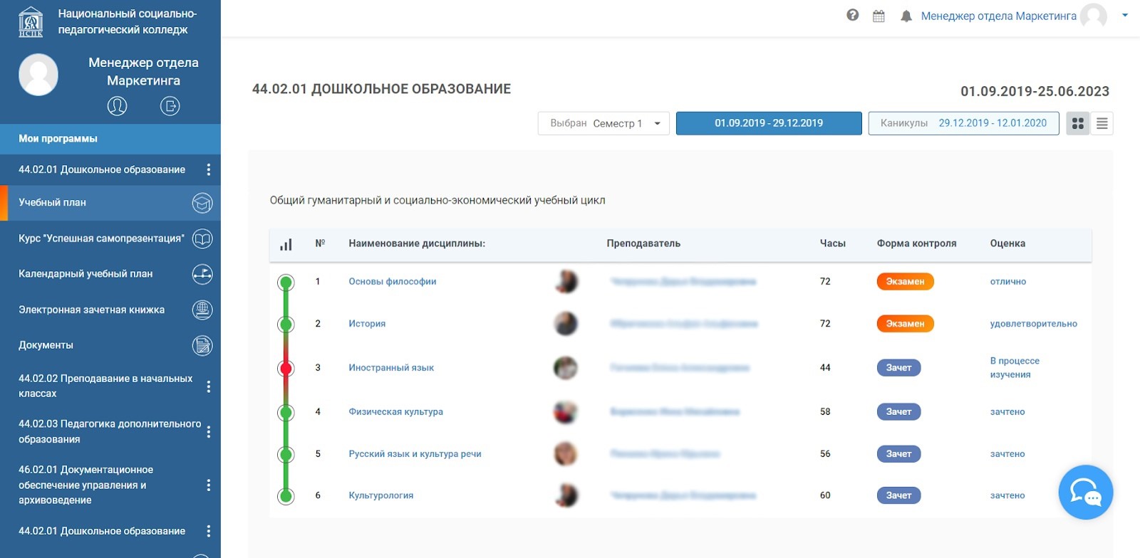 Интерфейс личного кабинета в системе дистанционного обучения НСПК